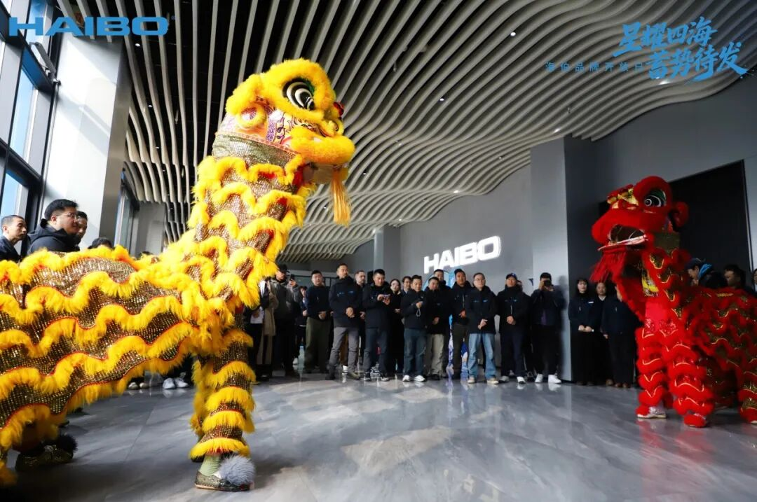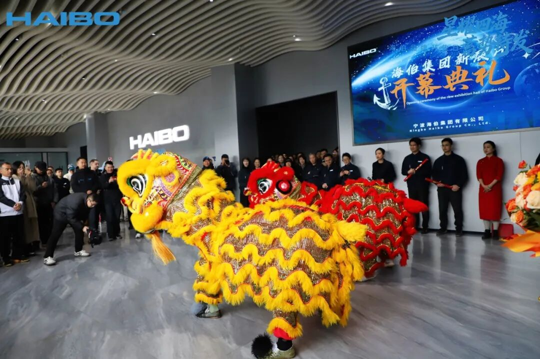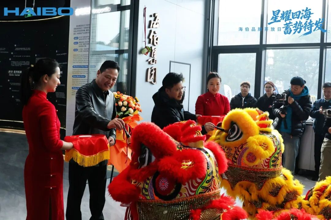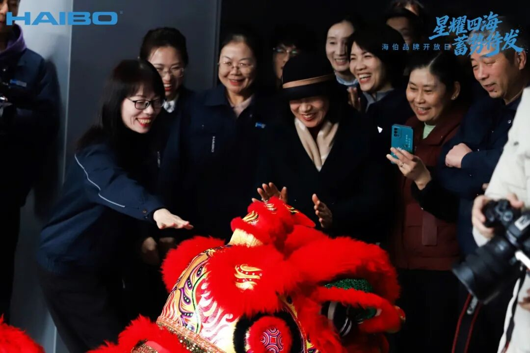 开幕典礼现场氛围热烈,充满传统与喜庆的气息。伴随着音乐,舞狮点睛仪式顺利举行,孙敏列书记和贺少杰董事长手持毛笔为雄狮点睛,寓意着赋予海伯集团展厅无限生机与活力。