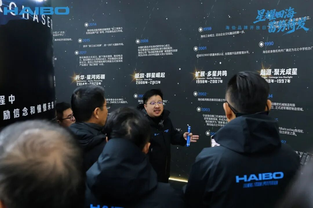 在工作人员的引导下,嘉宾们有序进入海伯展厅参观。漫步展厅之中,海伯集团发展脉络与奋斗历程清晰呈现。整个展厅精心设置了企业概览、发展历程墙、匠心传承、海伯品牌及产品、海伯钓具家族、专利墙、社会责任等多个特色版块,全方位多角度地展现了海伯集团的综合实力与发展成就。